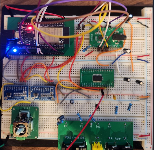 At this point you should be wired in and ready to test. Since the BD37033 uses a higher voltage than the rest of the testbed it’ll need to be fed between 7v and 9.5v separately, though i’d recommend 8.5v. Once that’s done make sure bench power is turned on before you plug in the usb on the esp32.